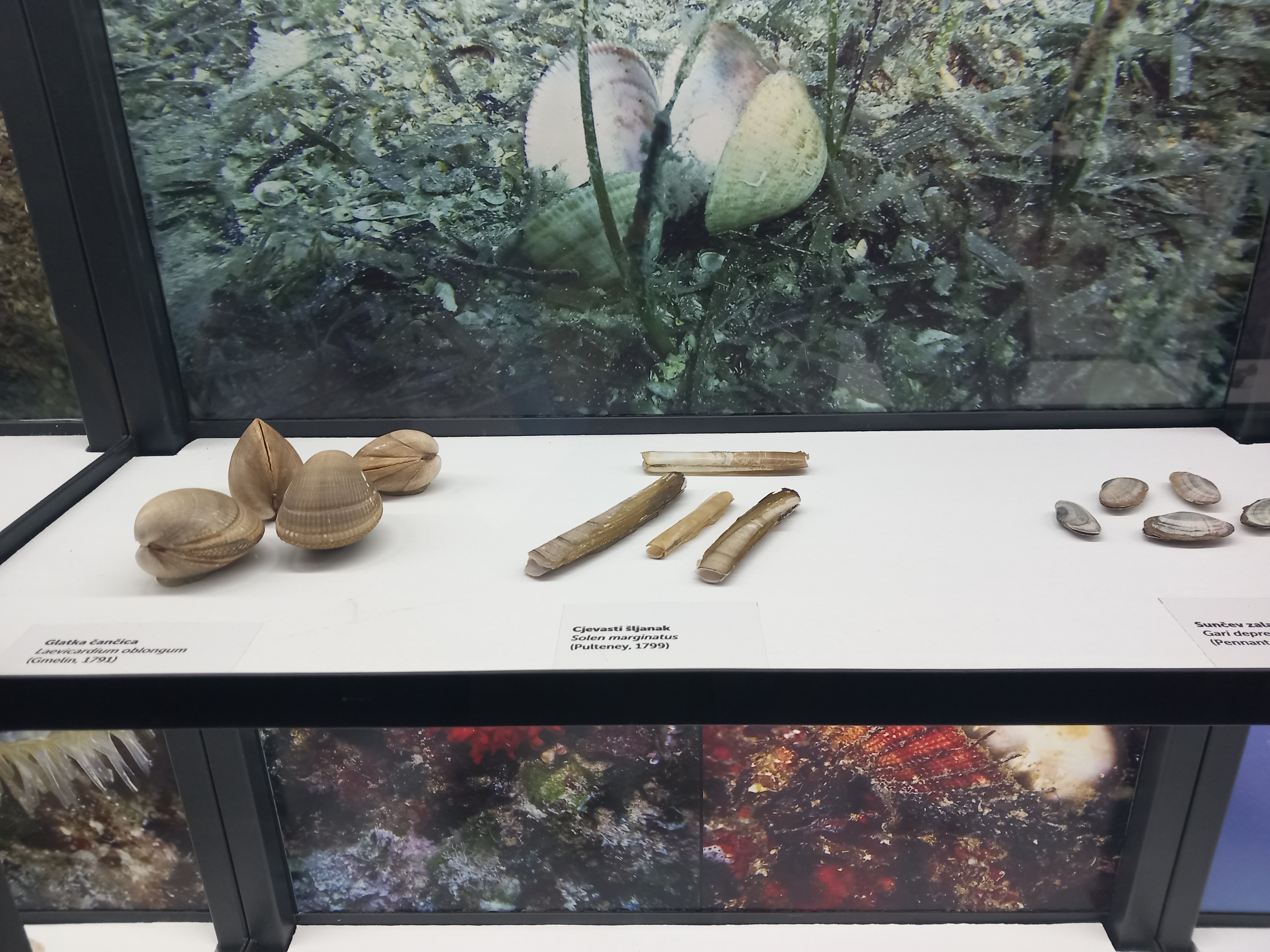 19. travnja u sklopu sata biologije učenici 3.f razreda posjetili su izložbu: “Blago jadranskog podmorja” – izložbu najatraktivnijih ljuštura jadranskih školjaka, puževa, oklopa rakova, te kostura spužava i koralja u organizaciji Podmorko d.o.o.