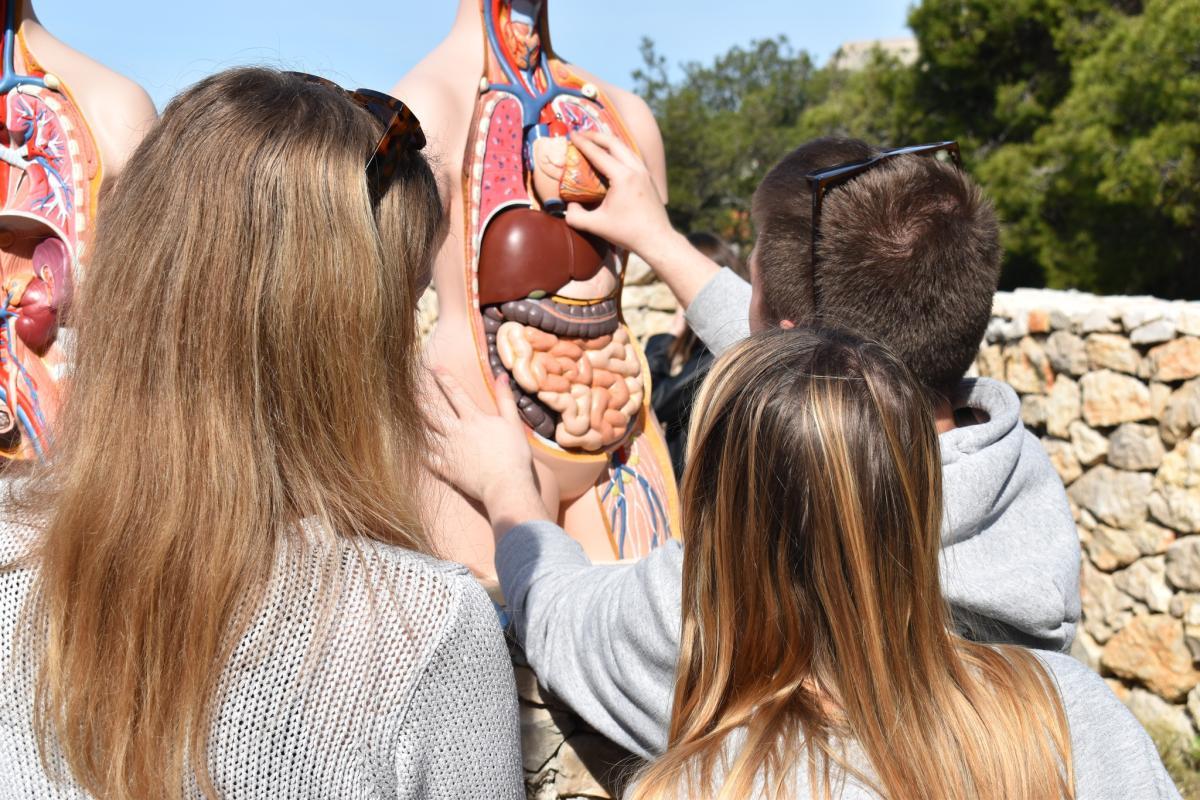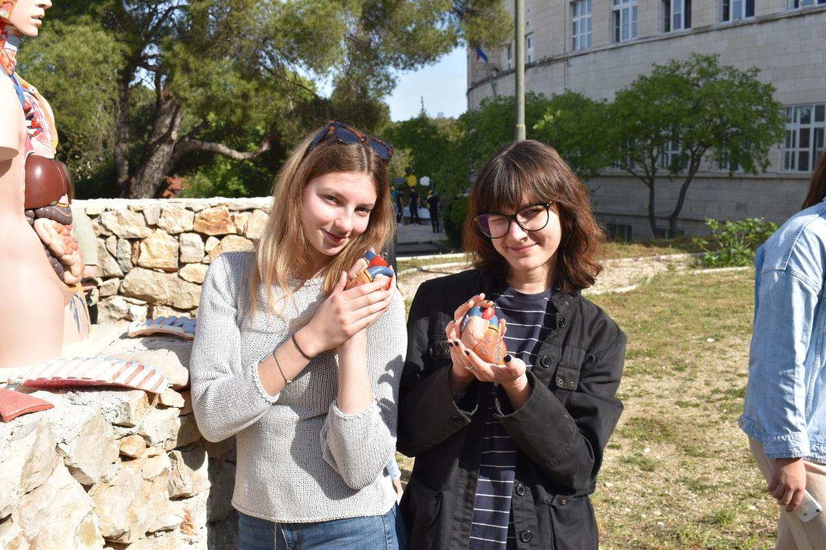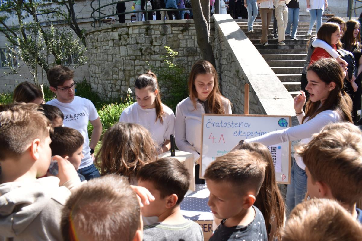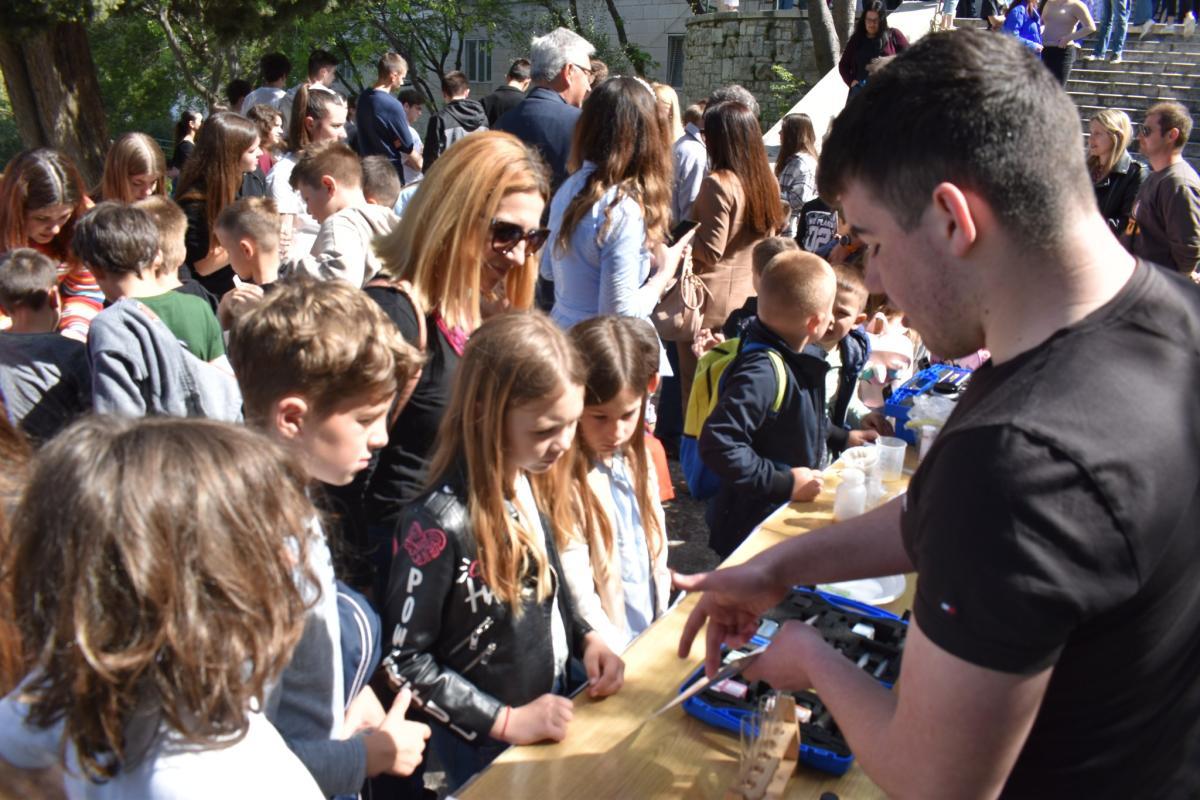 Ove godine nas je vrijeme poslužilo pa smo obilježili Festival znanosti s puuno zabavnih i poučnih aktivnosti, baš onako kako znanost i zaslužuje! Mnoštvo mališana iz šibenskih vrtića, osnovnih škola, ali i naši znatiželjni učenici, imali su prilike sudjelovati u raznim demonstracijama i pokusima te naučiti kako su sve priroda i društvo povezani. Bilo je tu: praktičnih radionica i demonstracija iz kemije, pokaznih vježbi prevencije nesreća na vodi, prezentacija gradnje suhozida, ekoloških igara i poduka o kompostiranju u sklopu biologije, demonstracija i interaktivnih pokusa iz fizike i matematike te predavanja o suživotu čovjeka i prirode Udruge Biom. Ovu manifestaciju nisu propustili posjetiti i dožupanica, Iris Ukić Kotarac te viši savjetnik za obrazovanje i nove tehnologije, Vinko Bulat. A sve ovo bilo je moguće zahvaljujući spremnosti naših vrijednih učenika-demonstratora koji su se rado odazvali na sudjelovanje, naših nastavnica koje su ovo organizirale: nastavnica biologije Tine Šantić i Ane Bogadi, nastavnica kemije Ane Plenče Mudrić i Natalije Hobar, nastavnice fizike Bojane Oreb i nastavnice matematike Lorane Antunac te neizmjeroj podršci ravnatelja Zorana Smolića.