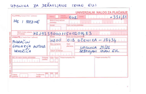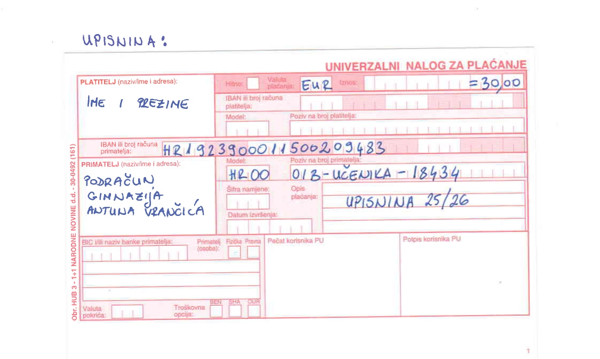 Učenici 2. – 4. razreda imaju prva dva sata sat razrednika u navedenim učionicama, a ostale (3. – 7. sata) prema rasporedu koji će dobiti od razrednika. Upis za navedene učenike održat će se prvi nastavni dan (potrebna svjedodžba o prethodno završenom razredu i kopija uplatnice –posebne aktivnosti i usluga škole).